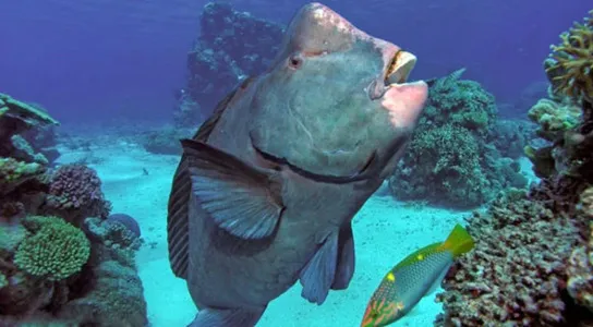Gregarious by nature, bumphead parrotfish form shoals of 20 to 100 fish, resting in shallow, sandy lagoon flats, around caves and shipwrecks at night. During the day, the adults move to the seaward side as they scour the coral reef for food.