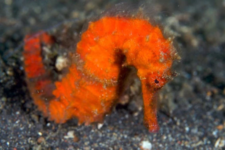 The Barbigants pygmy seahorse (hippocampus barbiganti) can be found all over Indonesia in various colours and at all depths. They can be found in the muricella sea fans in Papua New Guinea, Philippines and Malaysia. These fans have bulbous red polyps as do the pygmies. This, along with their small size, is what makes them so difficult to spot.