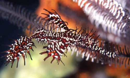 Amazing camouflage of harlequin ghost pipefish to avoid predation