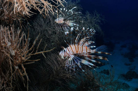 As their name suggests, they are fearsome predators. Hunting mostly at night, the lion fish will eat just about any crustacean or fish it can catch. Normally sluggish fish, they expend a lot of energy hunting and must therefore eat a considerable amount; so much of this fish’s behaviour is dictated by hunger.