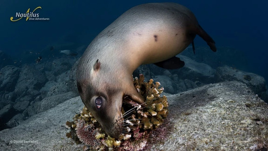 They are also playful with each other, whether playing tag, or using a prop such as a starfish, red-lipped batfish or pufferfish as a toy. However, the poor ‘toy’ does not seem to share in the fun. Sea lions appear not to know their own strength and have been known, when playing with marine iguanas, to accidentally break their backs.