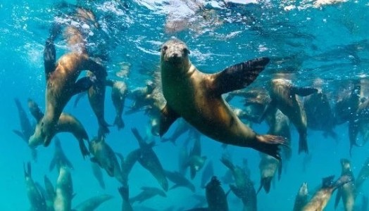 Few marine creatures seem to delight so much in the joy of life as a sea lion. Watching them play with each other, with divers and with other marine creatures, it is hard not to imagine they are simply having fun. These pinnipeds (flippered feet) apparently delight in performing a series of aquabatic stunts much to the amusement of divers. They can roar past underwater at break-neck speed then twist and turn with seemingly effortless ease.
