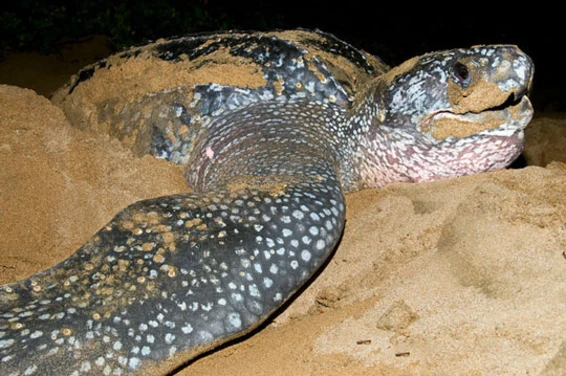 The leatherback turtle should be reasonably easy to spot due either to its sheer size or by the prominent longitudinal ridges of cartilage running the length of its shell.