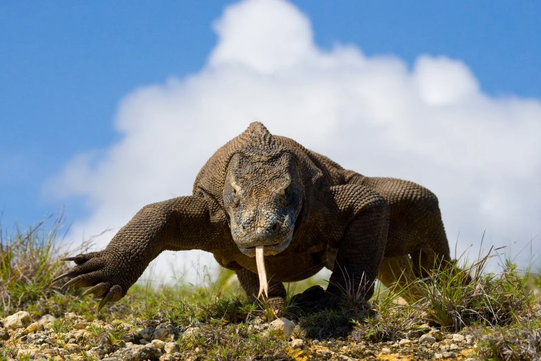 This is a vulnerable species and it is found on the IUCN red List. There are only approximately 4,000 to 5,000 Komodo dragons now living in the wild.